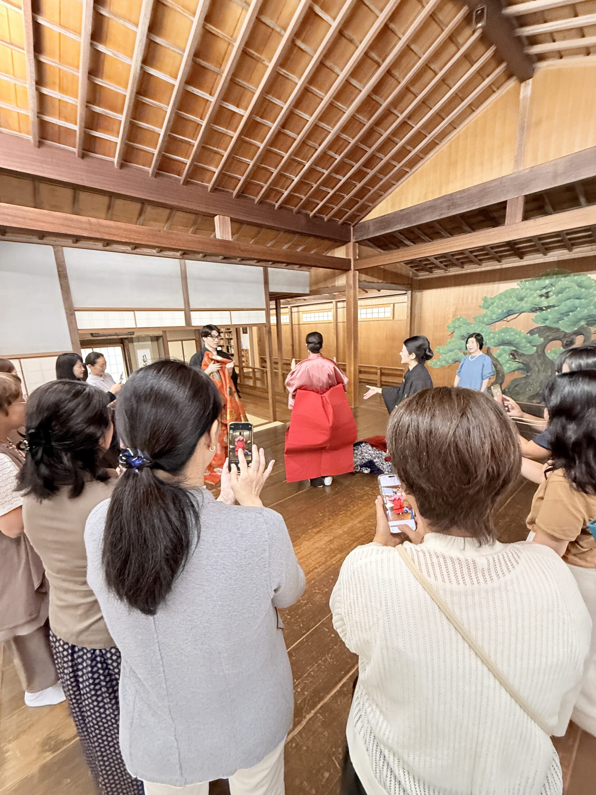 能の動きや所作に触れるにつれ、皆様の表情が次第に引き締まり、舞台の空気が凛としたものへと変わっていく――その変化を目の当たりにするのは、スタッフ冥利に尽きる瞬間でした。