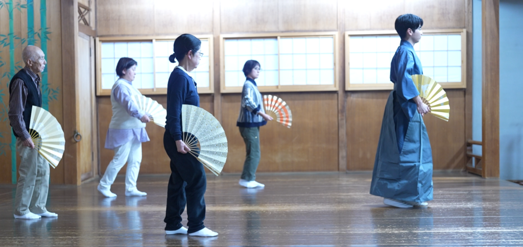 仕舞の実技では、扇の持ち方を丁寧に確認しました。