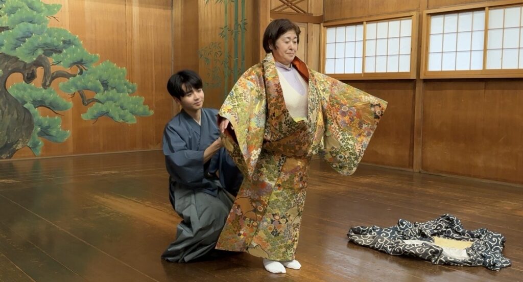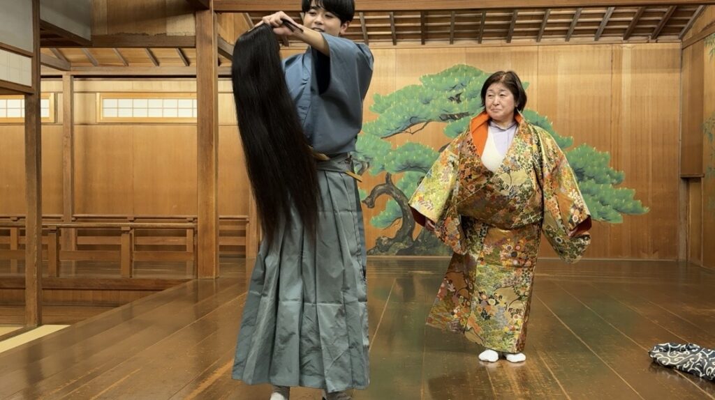 なお装束は、汗や動きによって少しずつ傷んでいきます。保存のために「虫干し」といって、舞台の上に広げて空気を通す作業も定期的に行われます。使い続けながら、守り続ける。その両立が、数百年という時間を越えてきました。