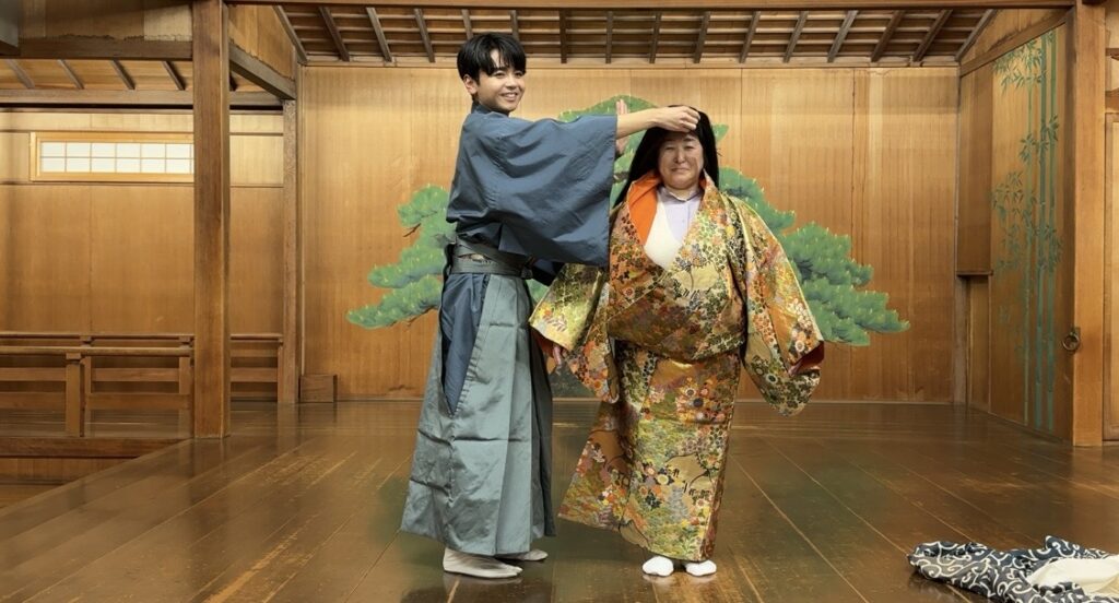 装束の選択は、役者の身長、季節、上演場所に合わせて役者自身がアレンジするものだそうです。同じ演目でも、誰がどこで演じるかによって、舞台の色彩はわずかに変わります。