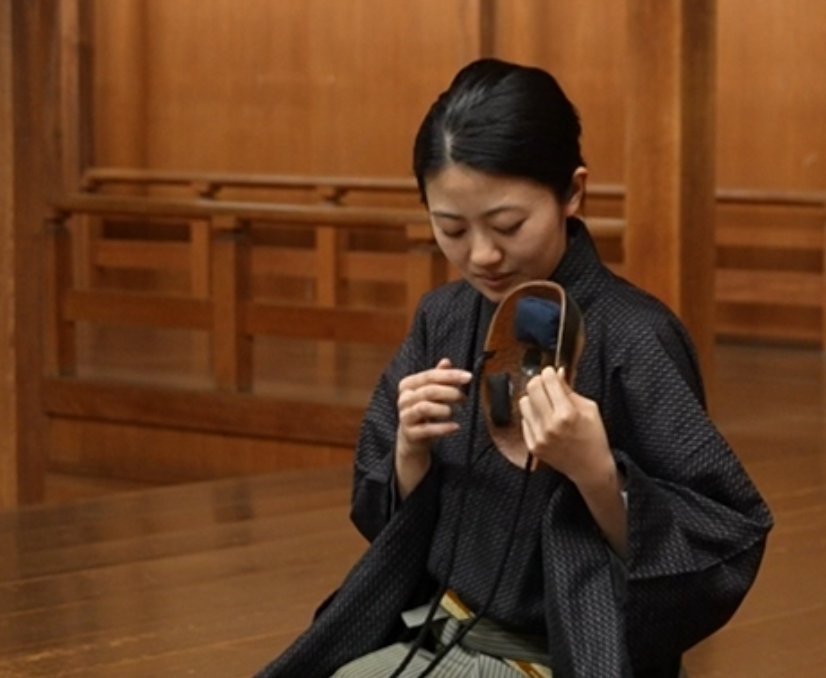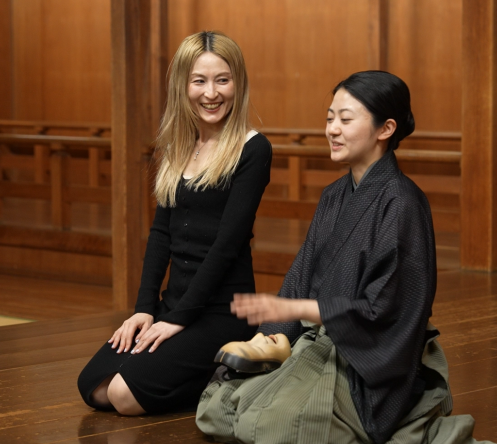 そのとき足裏が頼りにするのが、舞台の感触です。感覚を研ぎ澄まし、床板の継ぎ目、向きを読む。すり足で進みながら、足裏が静かに舞台の地図を読んでいる。見えないから、感じようとする。あの動きの必然が、面をつけた瞬間にはっきりとわかります。